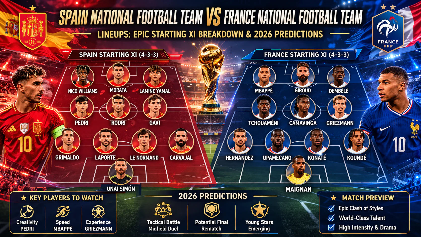 Predicted Spain National Football Team vs France National Football Team Lineups for 2026 World Cup Glory